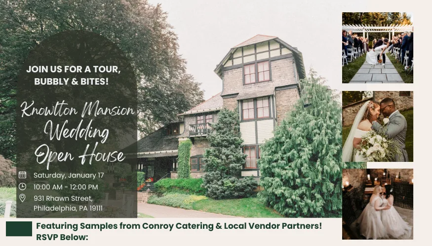 Please Join Us for Our Open House! Join us for our next Wedding Open House on Saturday, January 17 from 10 AM – 12 PM at the Knowlton Mansion! Your Name Your Email Your Phone Number Your Fiance's Name Desired Event Date or Time of Year Expected Guest Count Are You Looking to Host an On-Site Ceremony? How Did You Hear About Us? Special Requests or Questions
